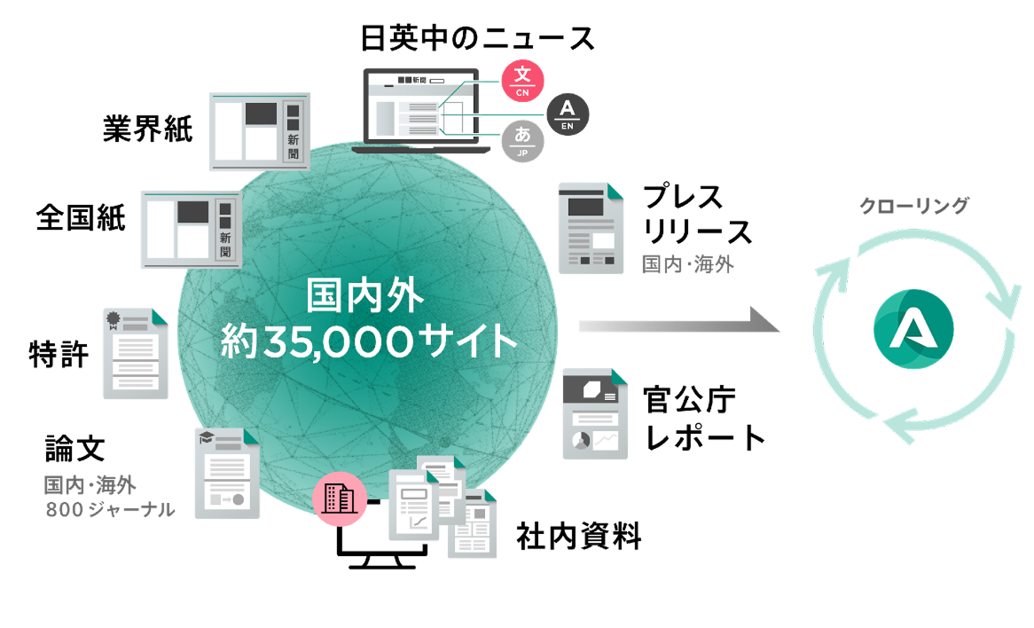 国内外のニュース、論文・特許、官公庁のレポート、社内資料から、