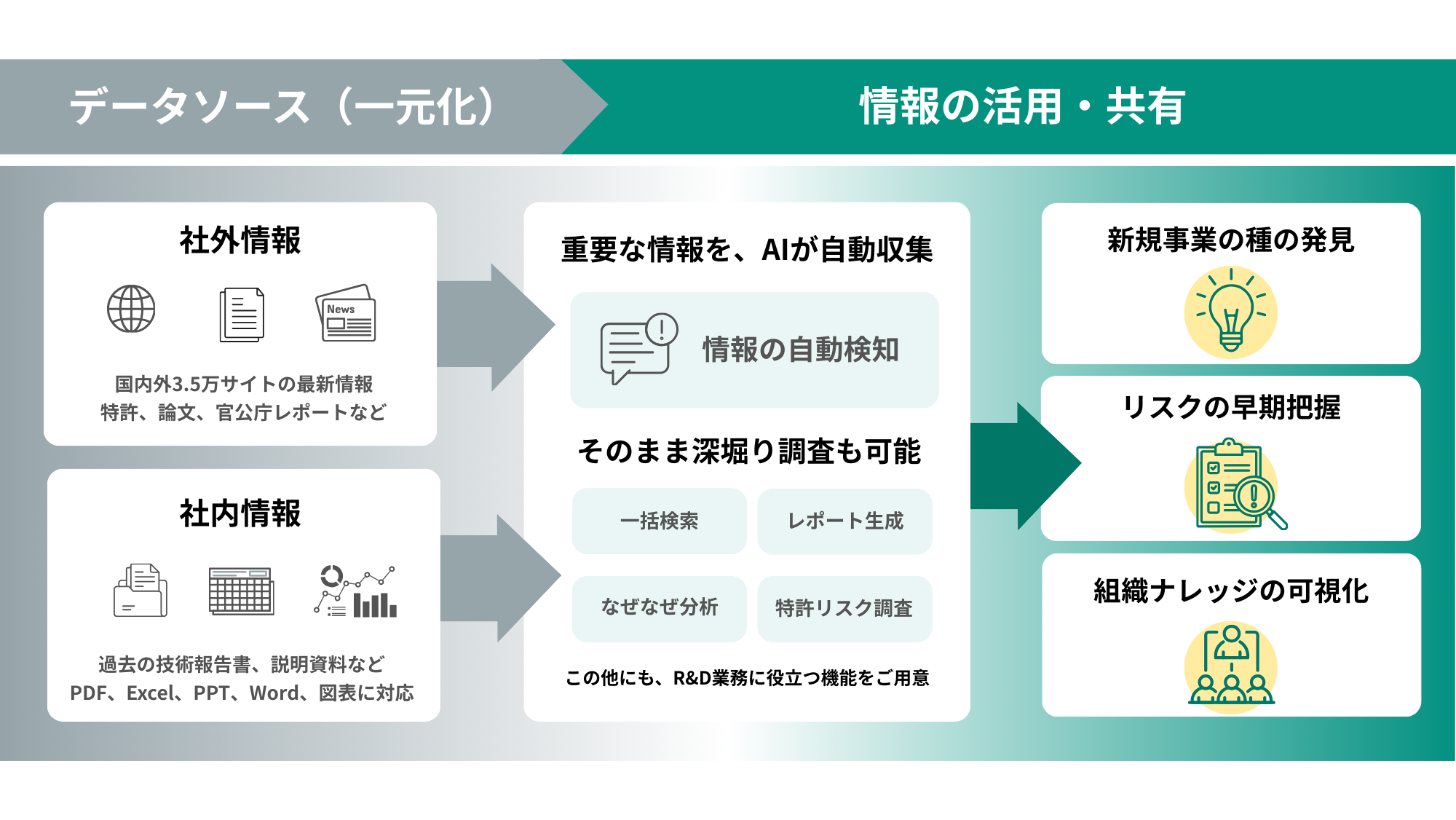 技術調査から用途探索までを素早く実行可能。